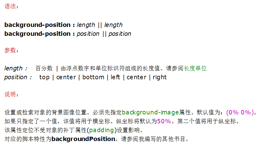如果指定的两个值都是方位名词, 那么两个值的前后顺序无关, 比如left top和top left 效果是一样的.
