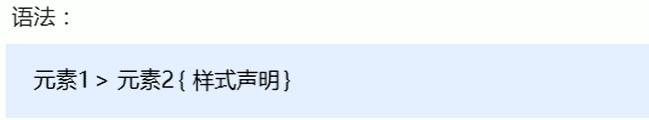 - 元素1 和 元素2 中间需要使用 大于号 隔开