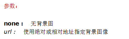 background=image 的默认值为none, 也就是没有背景图片, 他可以传入一个url来设置图片.