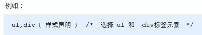 并集选择器是各选择器通过英文逗号 , 连接而成, 任何形式的选择器都可以作为并集选择器的一部分.
