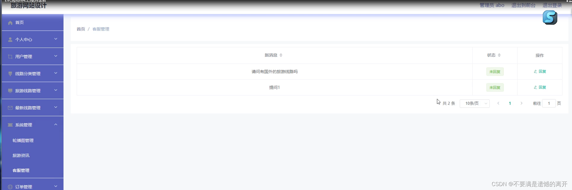 客服管理:管理员通过列表可以进行查看新消息或状态等信息,进行查看或回复操作。
