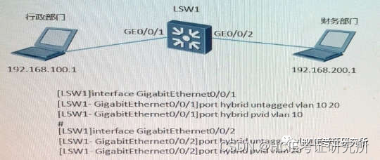 1、如图所示,交换机GE0/0/1和GE0/0/2两个端口都进行不同的此Hybrid配置,下面说法正确是()。(多选)
