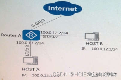 3、如图所示的网络,通过以下哪些都置可以实现主机A和主机B不能相互通信?(多选)