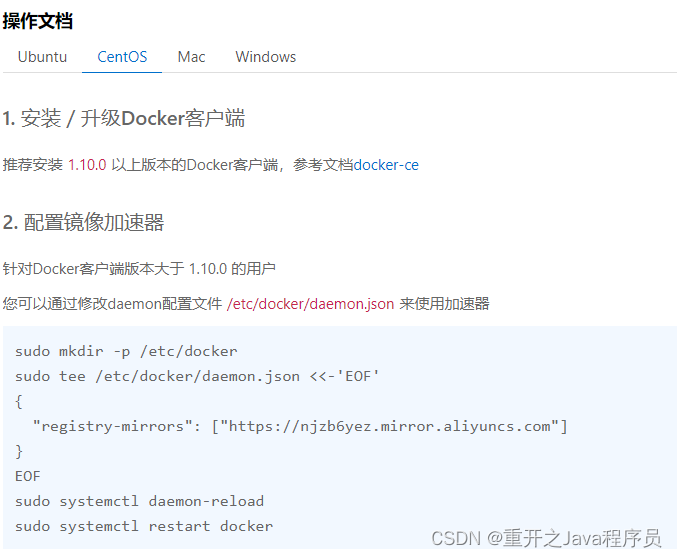 参考阿里云的镜像加速文档:阿里云登录 - 欢迎登录阿里云,安全稳定的云计算服务平台