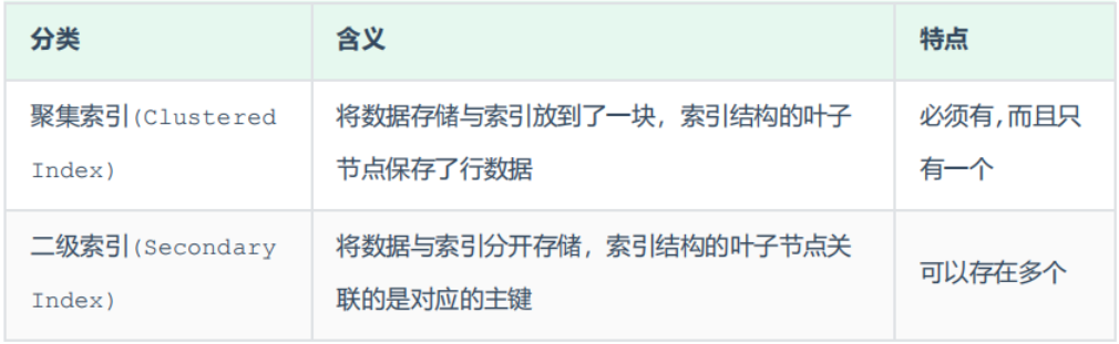 - 二级索引的叶子节点下挂的是该字段值对应的主键值。