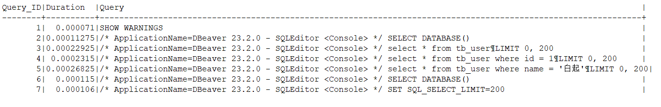 执行一系列的业务SQL的操作,然后通过如下指令查看指令的执行耗时: