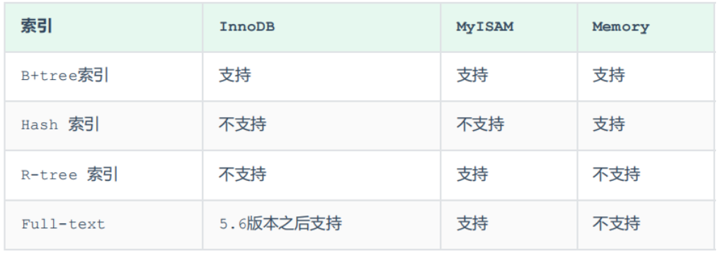 在MySQL中,支持hash索引的是Memory存储引擎。 而InnoDB中具有自适应hash功能,hash索引是InnoDB存储引擎根据B+Tree索引在指定条件下自动构建的。