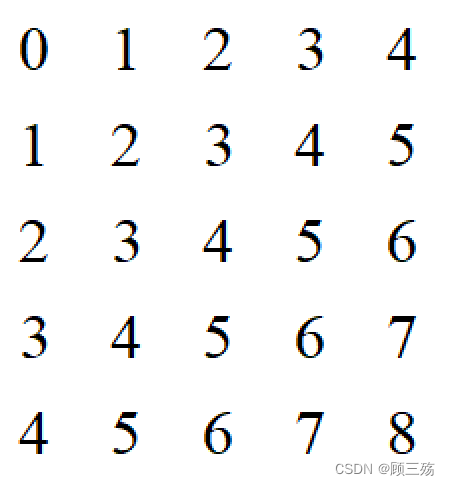 // 在每一行输出结束之后,使用 printf("\n") 来换行,使输出结果呈现矩阵的形式。