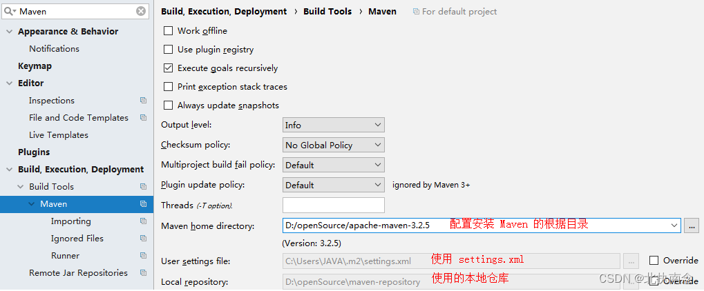本地仓库默认位置在用户目录/.m2/repository,本地仓库不建议在系统盘,最佳实践: