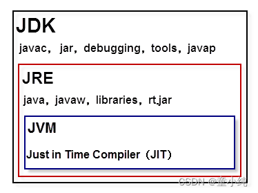 Java Runtime Environment (JRE) 包含:Java 虚拟机、库函数等。