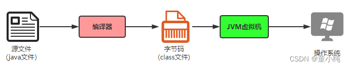 2. 再利用编译器(javac)将源程序编译成字节码文件,字节码文件的后缀名为.class;