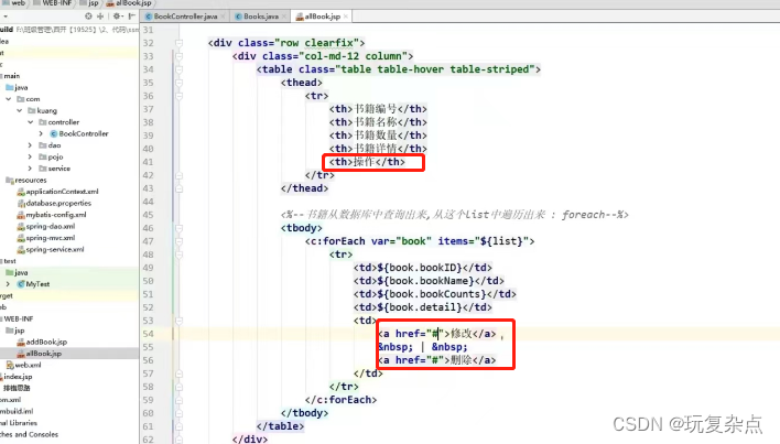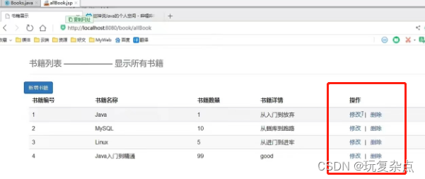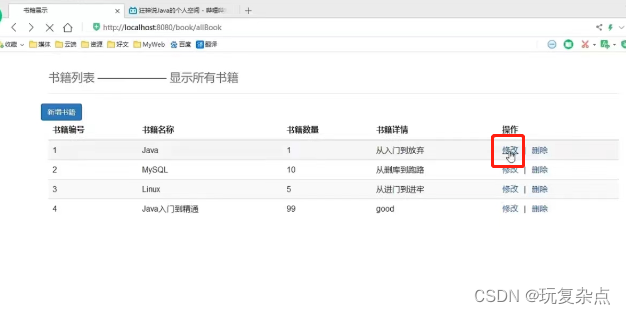 在显示查询出所有书籍的页面,每本书的后面增加修改和删除按钮