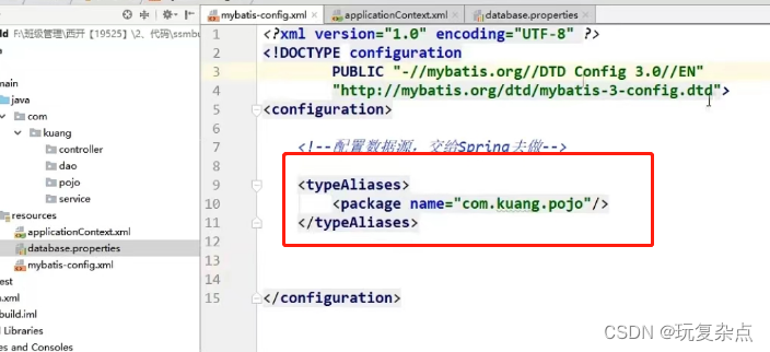 mybatis-config.xml中加入类的位置,后面可简化一些操作。