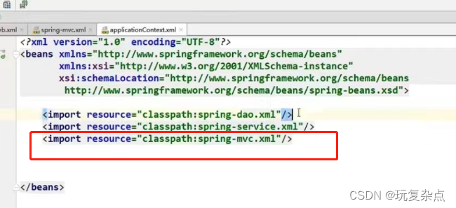 spring的核心配置文件applicationContext.xml中引入dao、service层的配置文件