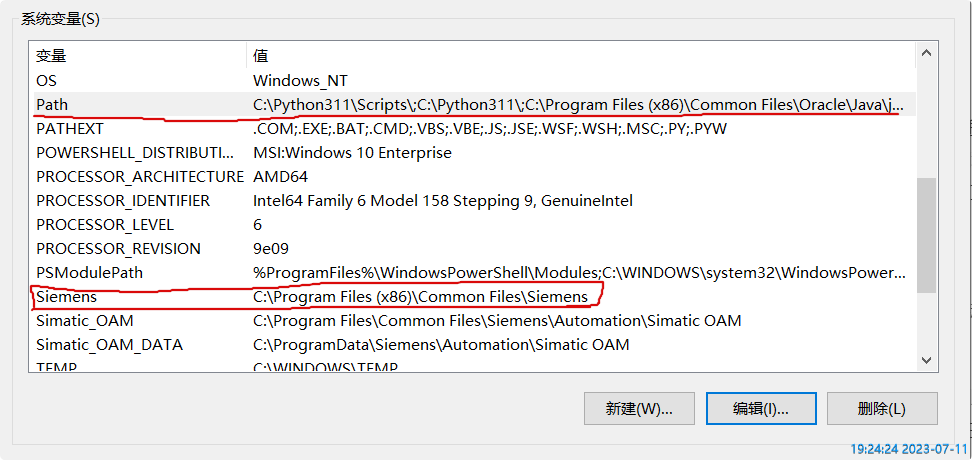 - 例子:之前我的环境变量太多了,而且很多都很长(软件的安装路径),拿西门子的博途软件为例,新建一个Siemens变量(名称随意),值就是对应的目录: