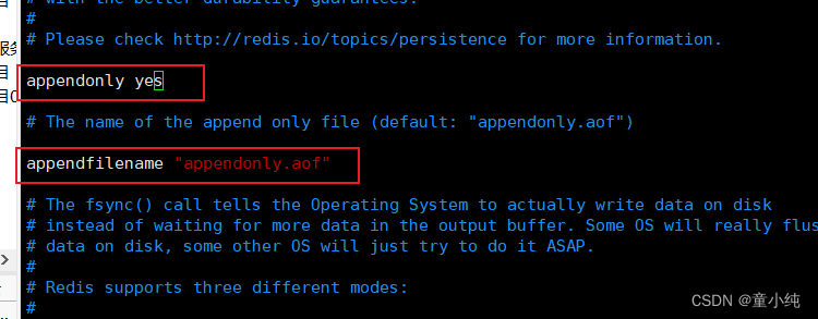 appendonly yes -> 每当Redis执行一个改变数据集的命令时(比如 SET),这个命令就会被追加到 AOF 文件的末尾。这样的话,当Redis重新启时,程序就可以通过重新执行 AOF文件中的命令来达到重建数据集的目的
