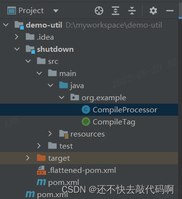 当我们开发完以后就要去debug我们的处理器,看是否有生效了,我们在demoSync中引入shutdown的二方包,这样就引入了我们对应的处理器,然后在应用中打上CompileTag注解,方便识别