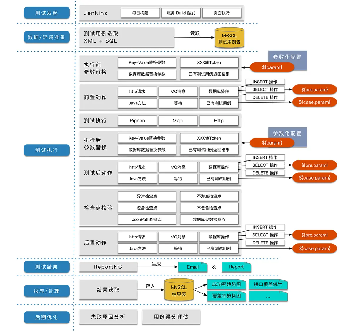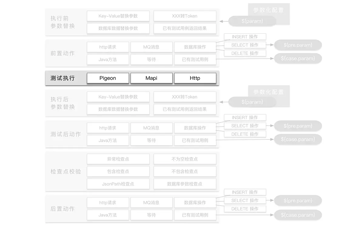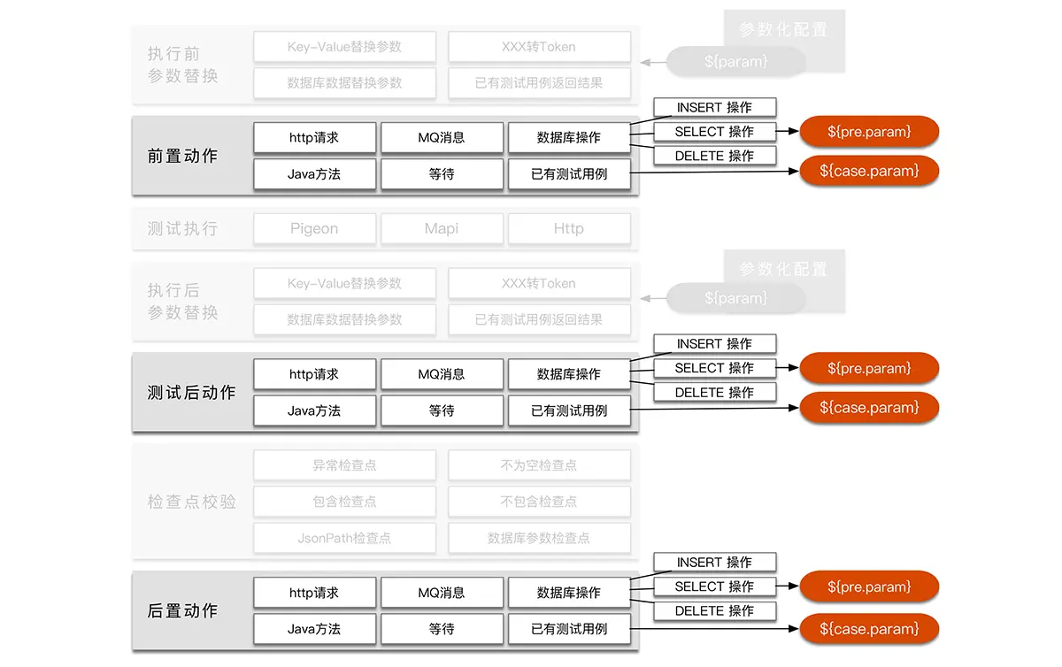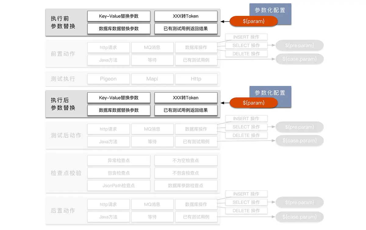 - 为了增加用例健壮性,设计了“参数化”、“前后置动作”等灵活的参数替换。
