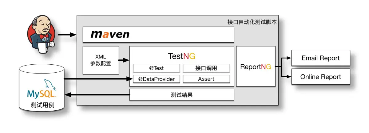 - 为了减少开发成本,使用比较常见的Jenkins+TestNG的脚本形式。