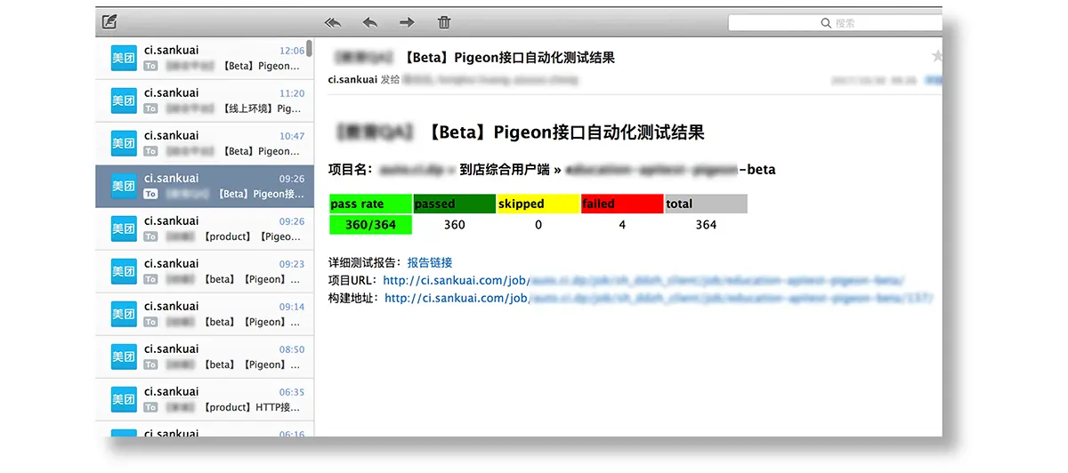 每天上班来会收到这样的测试邮件,通过邮件能知道昨晚执行的情况。如果有报错,可以点击“详细报告链接”,跳转到在线报告。