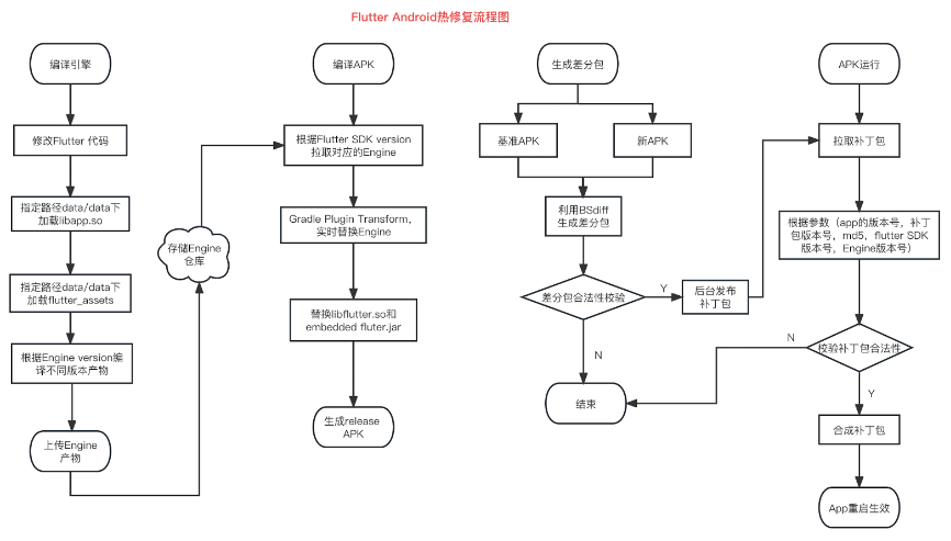 4, APP启动时访问后端接口,根据参数(app的版本号,补丁包版本号,md5,flutter SDK版本号,Engine版本号)拉取补丁包;