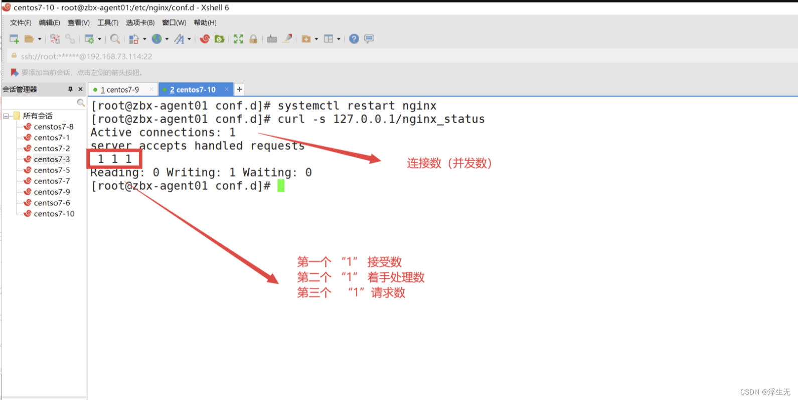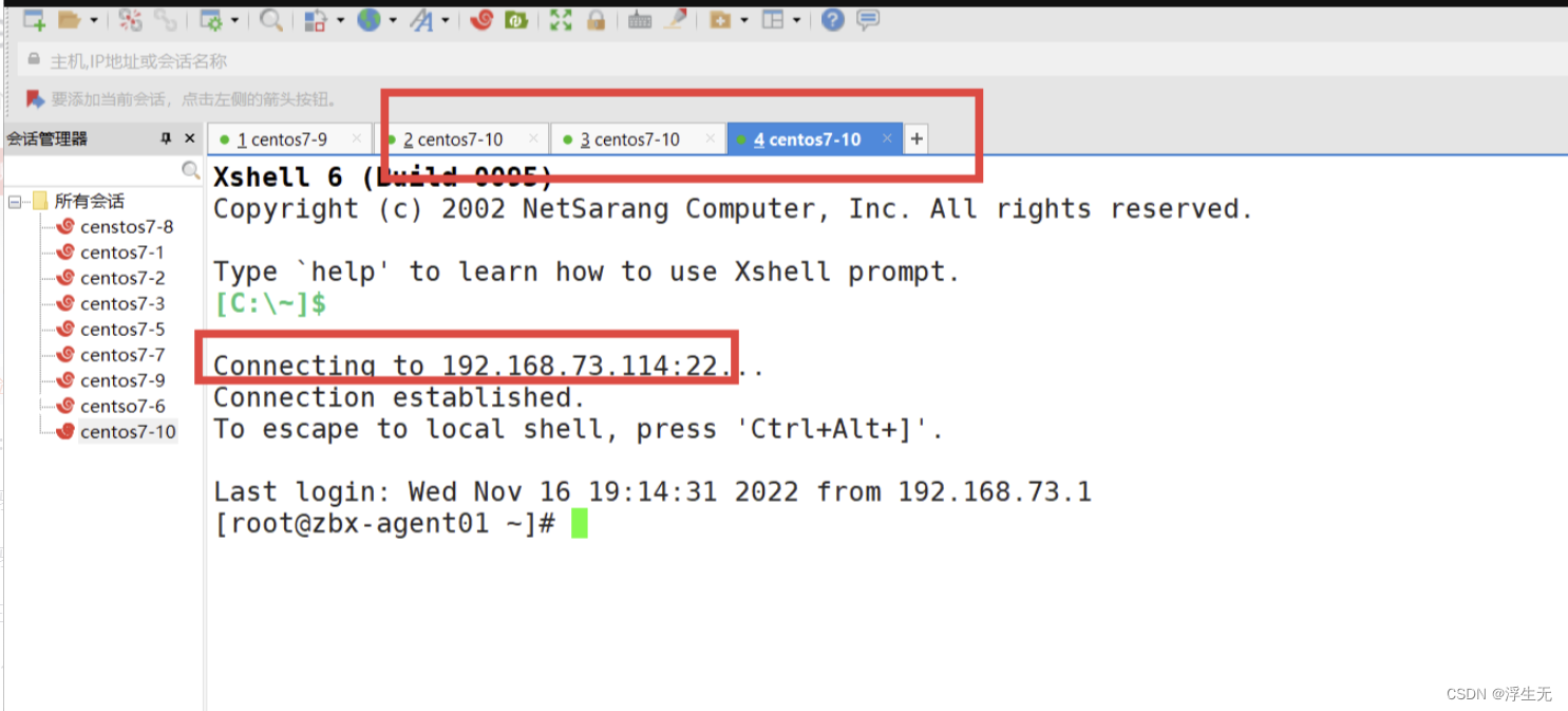 在xshell中连续连接三个192.168.73.114的会话
