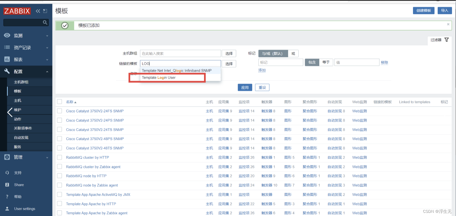 点击上方菜单栏【模板】,【Link new tamplates】搜索 login,选择 Template Login User,点击【更新】