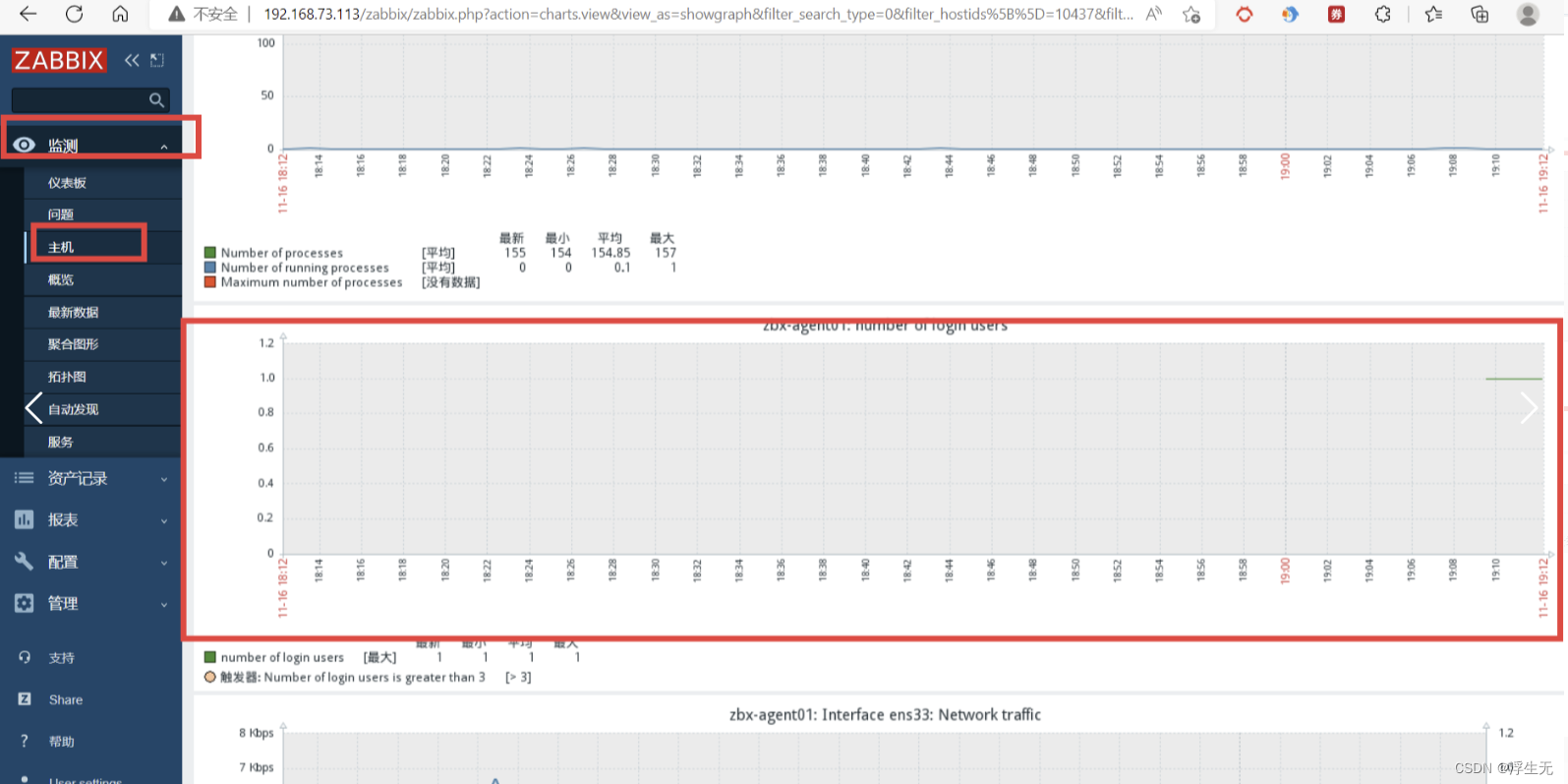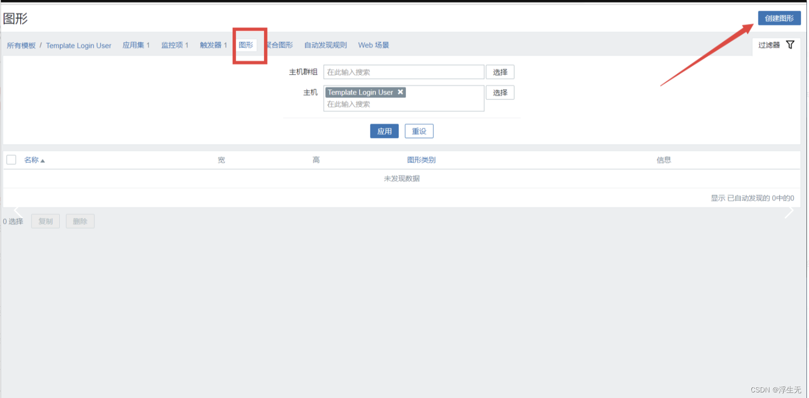 此时就点击【监测】中的【主机】,点击你关联主机的【图形】,即可查看到相关的监控项指标