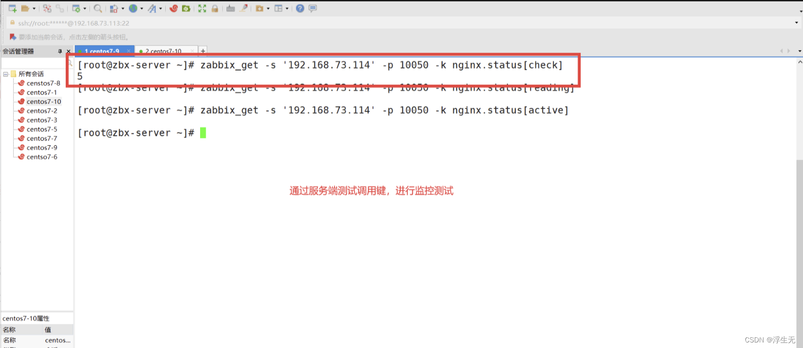 zabbix_get -s '192.168.73.114' -p 10050 -k nginx.status[check]