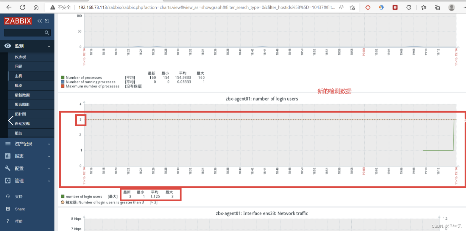 需求:某公司确定已经安装好zabbix监控系统,限制某台服务器登录人数不超过 3 个,超过 3 个就发出报警信息 。该服务器(192.168.73.114)已经添加至zabbix监控系统中