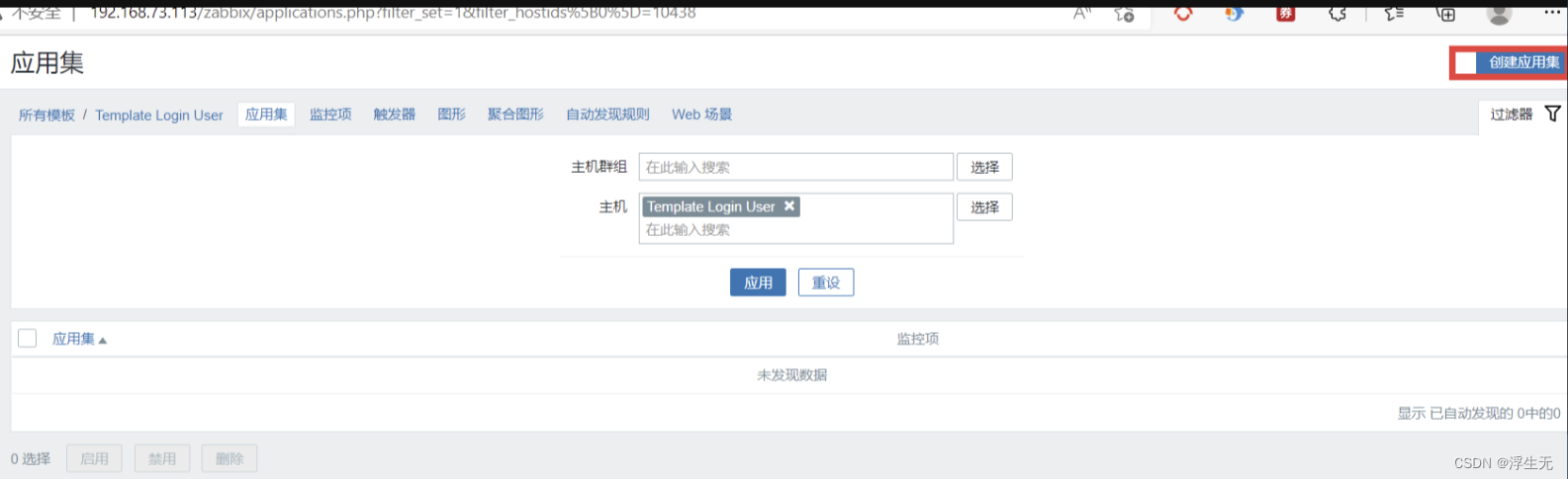2)创建应用集(用于管理监控项的)