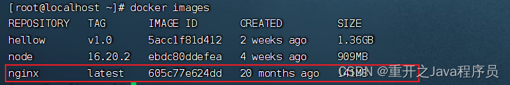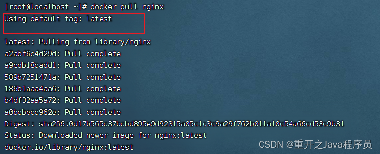 2) 根据查看到的镜像名称,拉取自己需要的镜像,通过命令:docker pull nginx