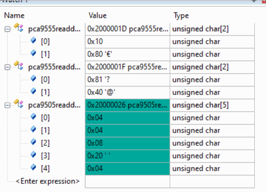 PCA9505_readdata(PCA9505_ADDR1,&pca9505readdata[0],&pca9505readdata[1],&pca9505readdata[2],&pca9505readdata[3],&pca9505readdata[4]);