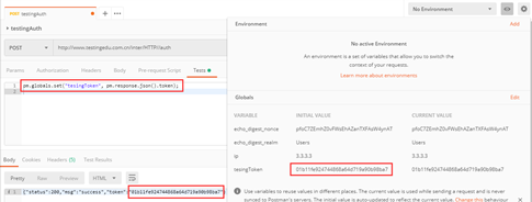 过程:发送请求,获取token值->在全局变量中添加token变量名->在Tests中写脚本设置token的值。